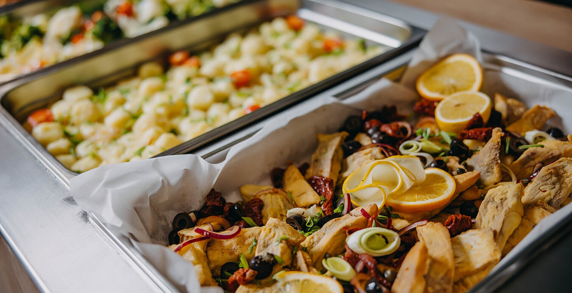 Exquisite Abendessen in Buffetform mit einer großen Auswahl an Gerichten der polnischen, mediterranen und sogar orientalischen Küche. Fleisch- und vegetarische Gerichte, Fisch, Salate, ein Kindermenü, Desserts, süße Backwaren und Getränke (Kaffee, Tee, Wasser, Säfte).